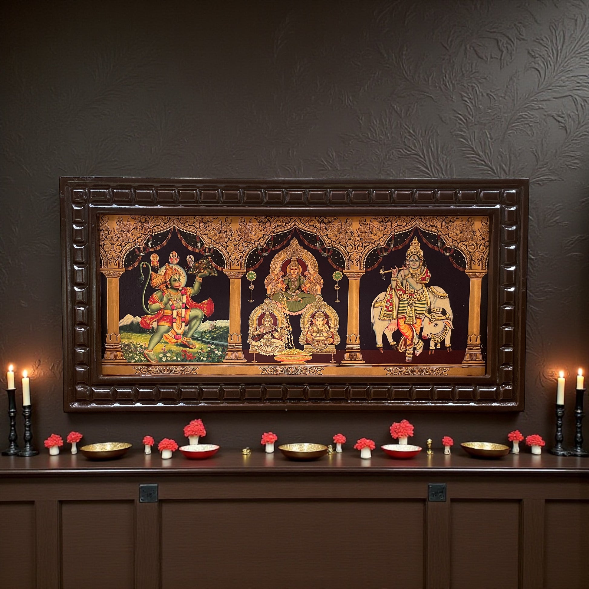 5-in-1 Divine Gold Leafed Art – Hanuman, Lakshmi, Ganesh, Saraswati & Krishna