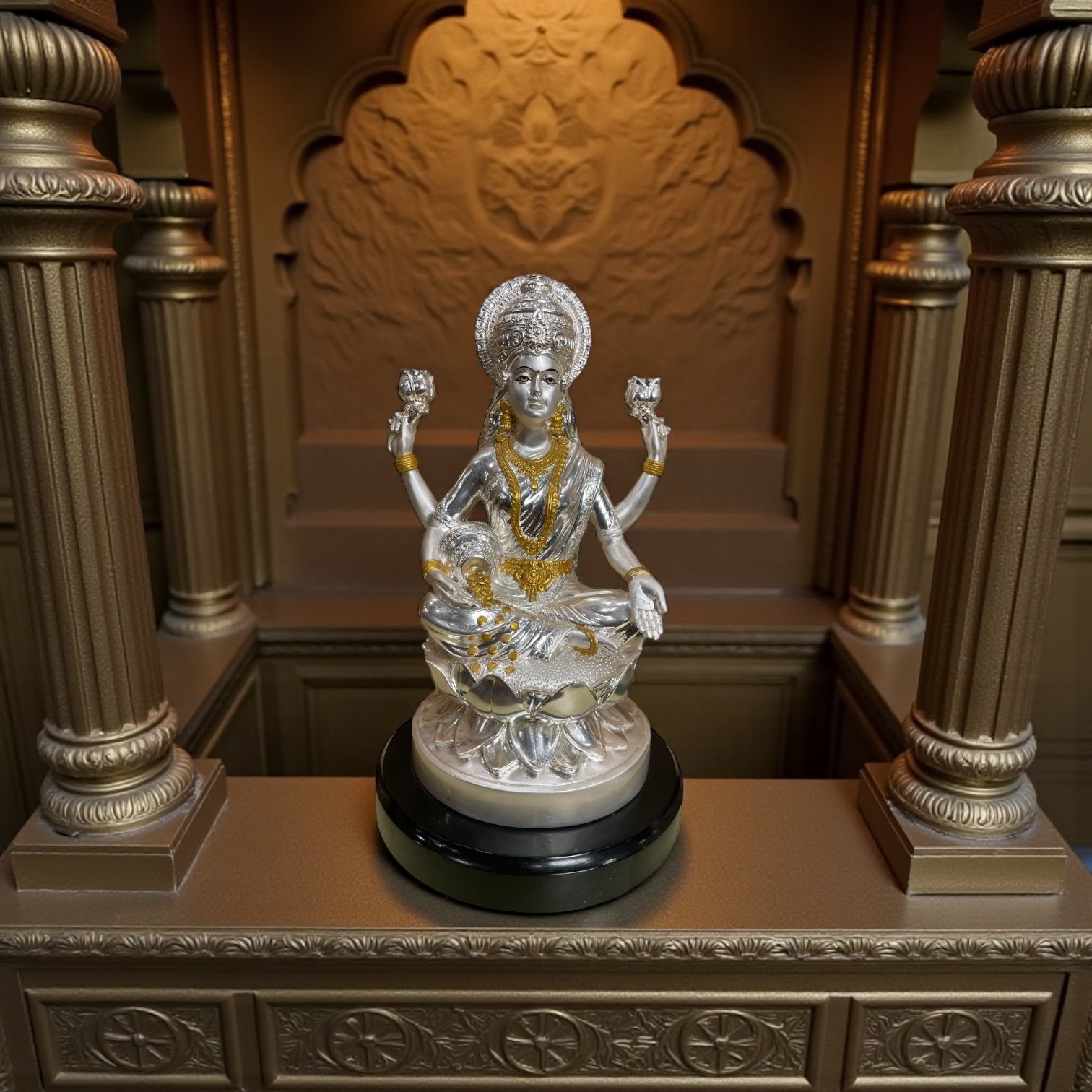 Bring home this exquisite sterling silver idol and welcome the divine blessings of Goddess Lakshmi for prosperity, peace, and abundance.