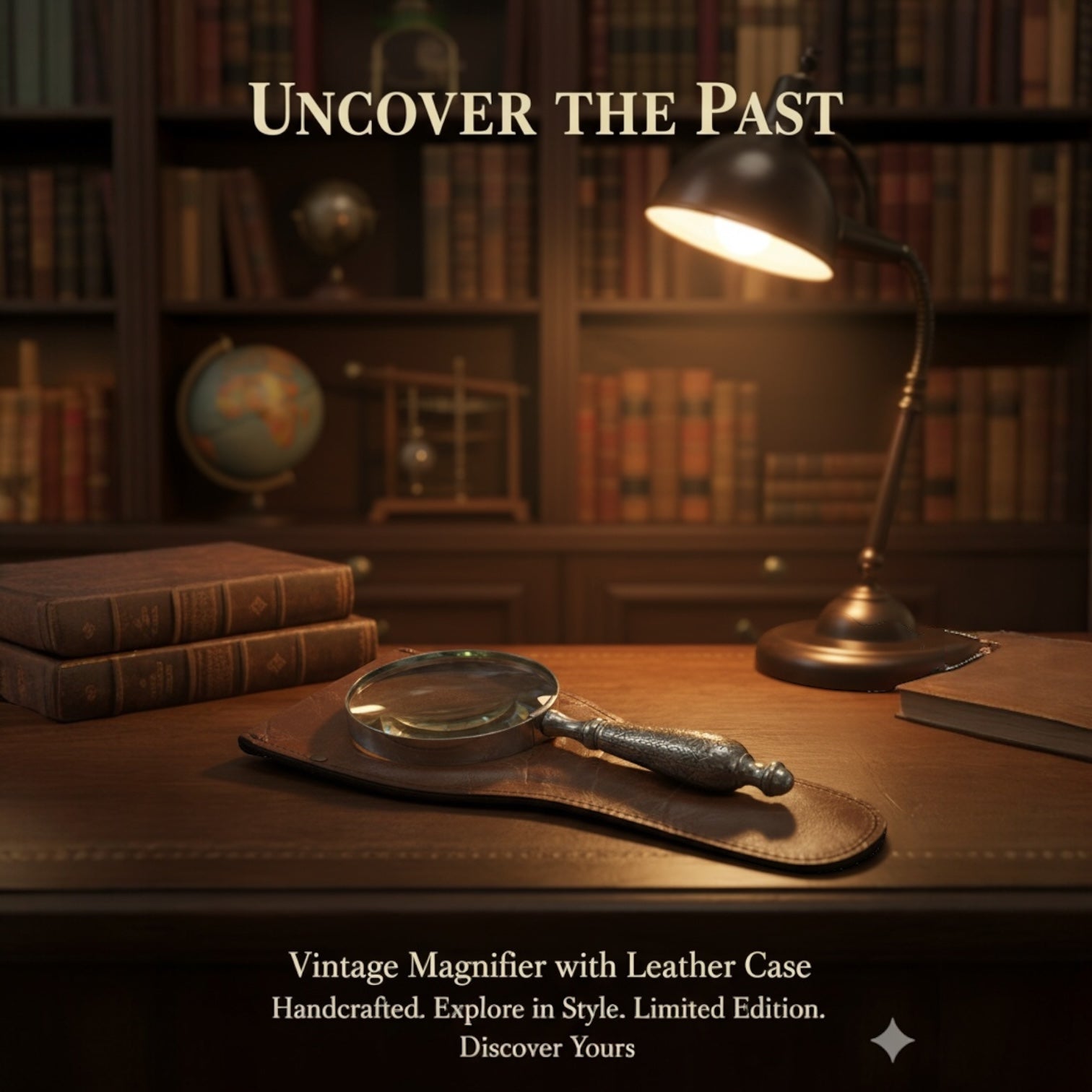 Discover the elegance of our Antique Magnifying Glass, beautifully crafted with a vintage brass finish and a polished handle that evokes a sense of timeless sophistication. This high-quality magnifying glass offers clear and precise magnification, making it as functional as it is stylish. Paired with a handcrafted leather bag, this piece is not only a practical tool but also a stunning collectible. Perfect for collectors, history enthusiasts, or as a unique gift, this set combines classic design with modern utility.