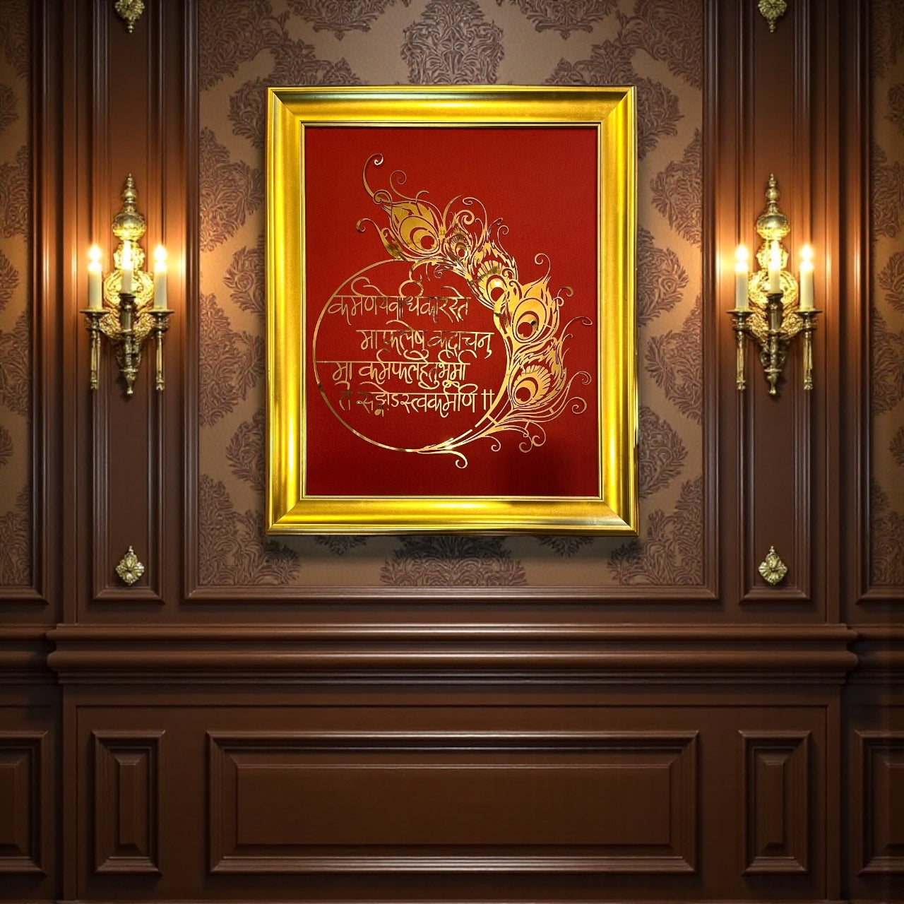 Inspire mindfulness and balance with this elegant Bhagavad Gita Shloka wall frame featuring the verse “Karmanye Vadhikaraste”. Designed with golden script on a rich green backdrop, this artwork reminds us to focus on duty without attachment to results. Perfect for home, office, meditation space, or as a thoughtful spiritual gift.
