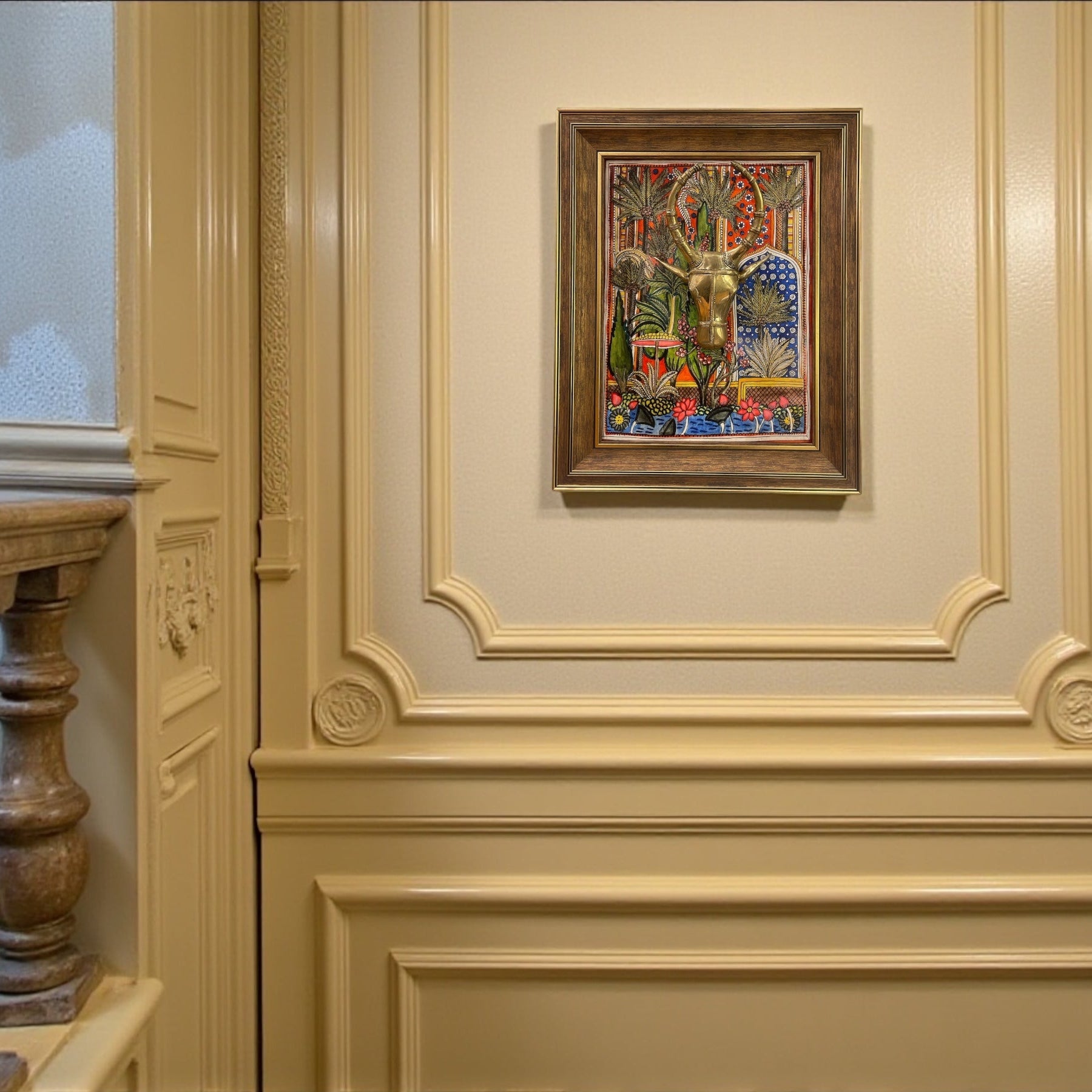 Perfect for living rooms, offices, or statement walls, this artwork merges traditional brass craftsmanship with artistic modern framing, making it a bold yet graceful décor piece.