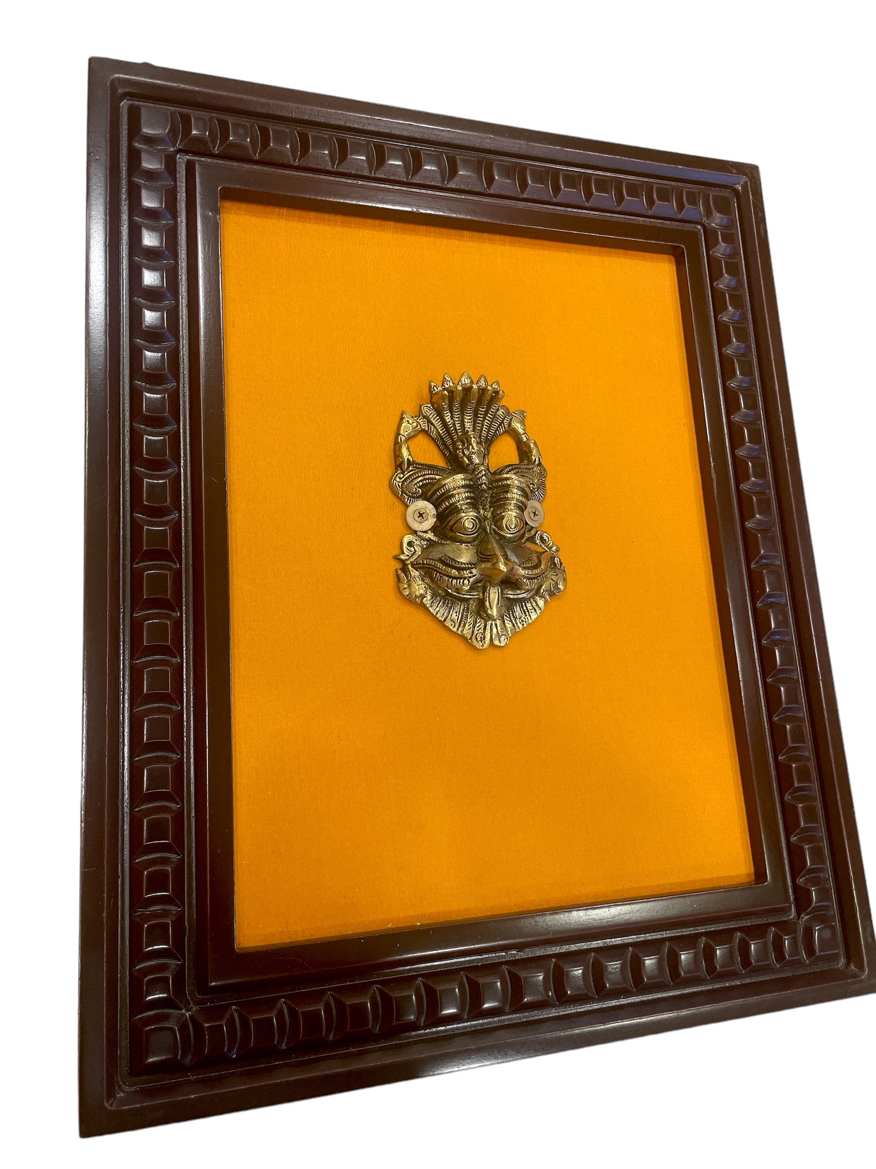 Brass Kirthimukuda with wooden frame