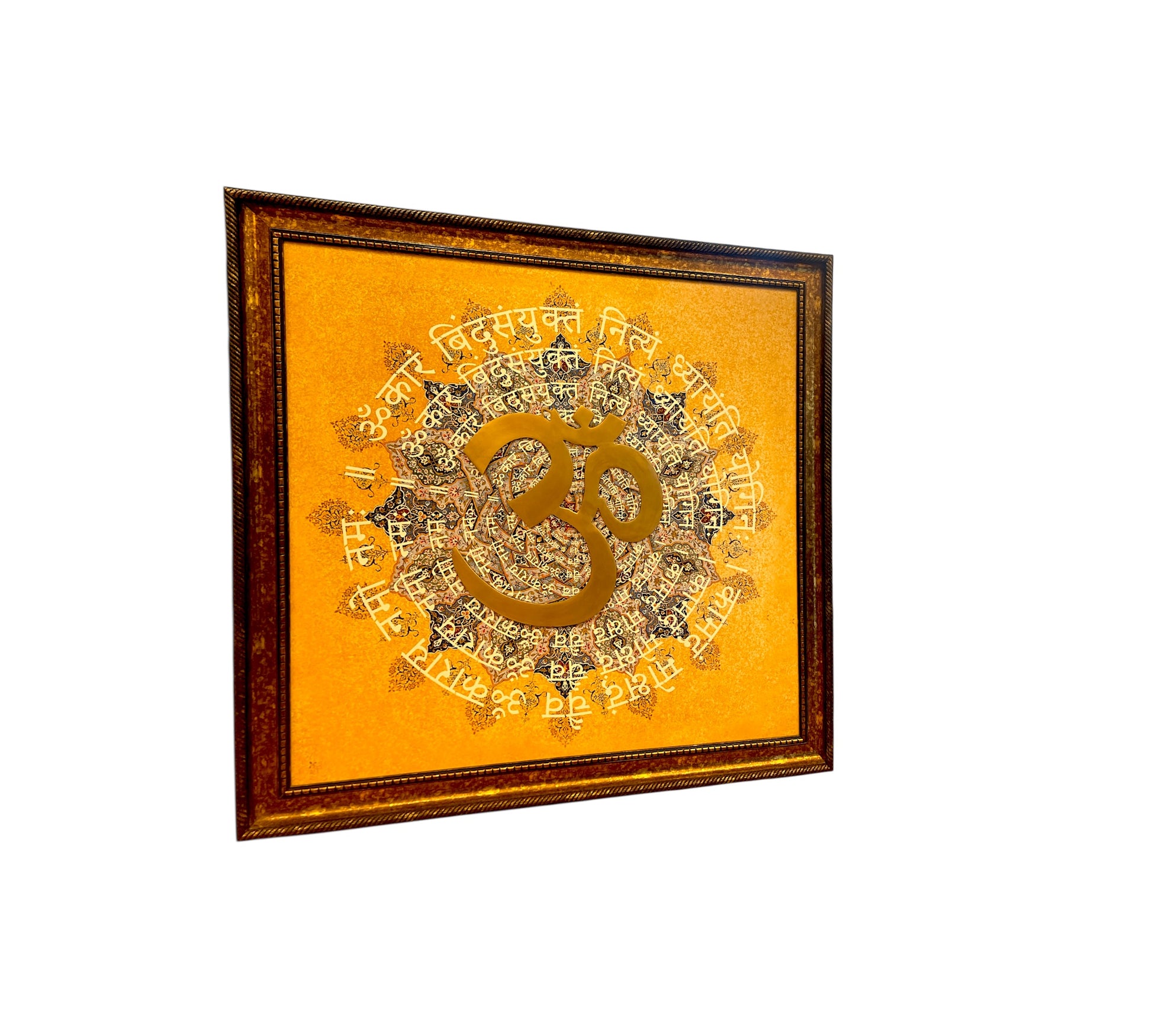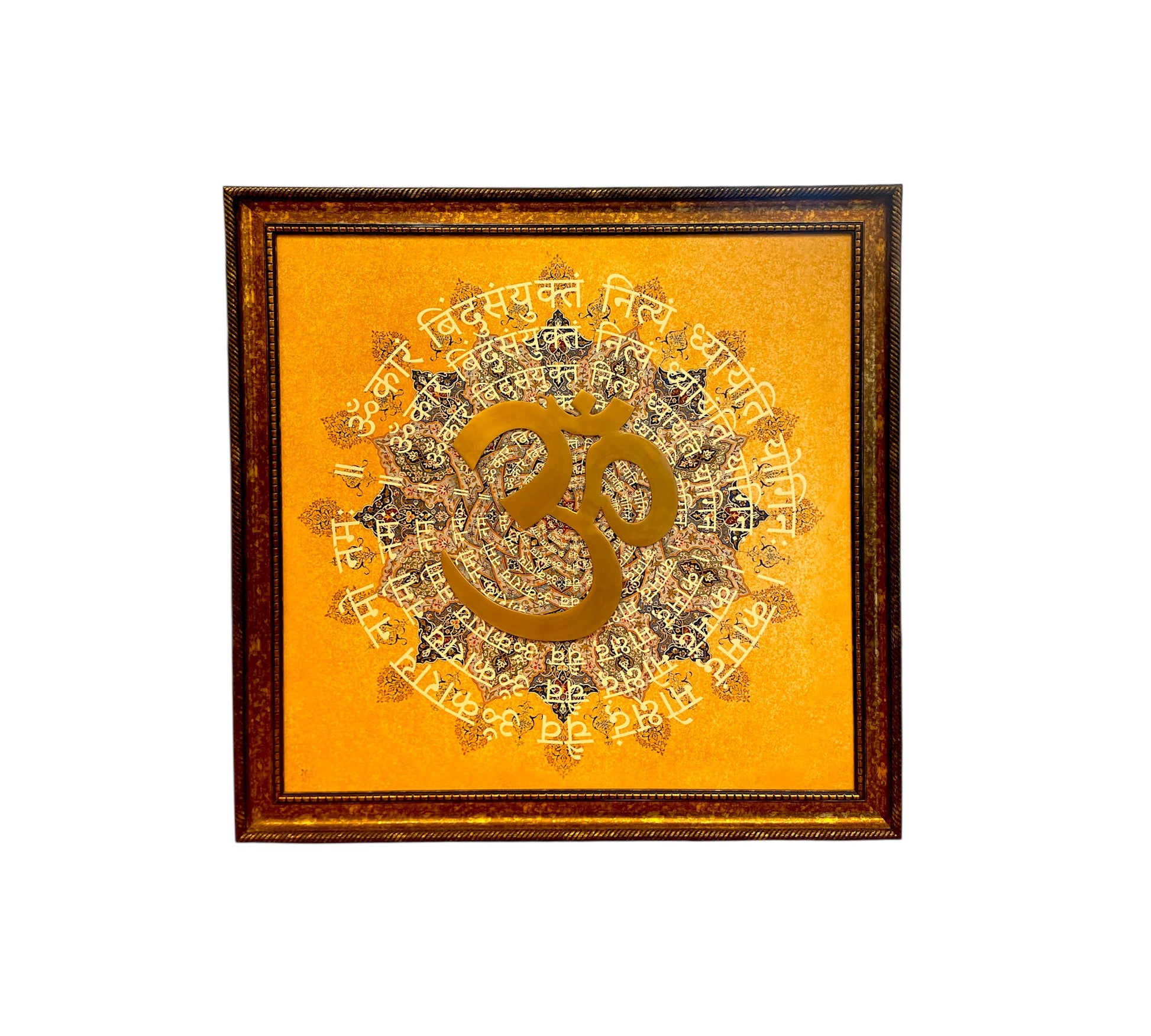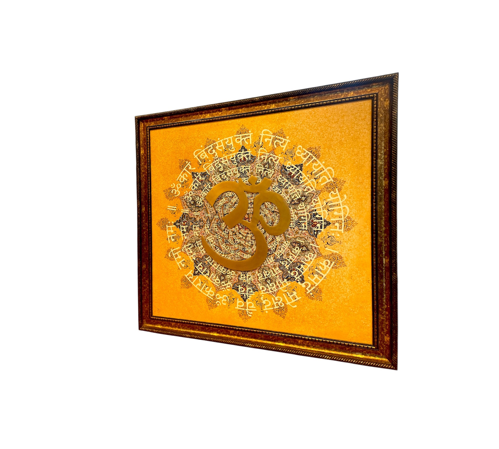 Brass Om with Omkara Mantra in moulded frame