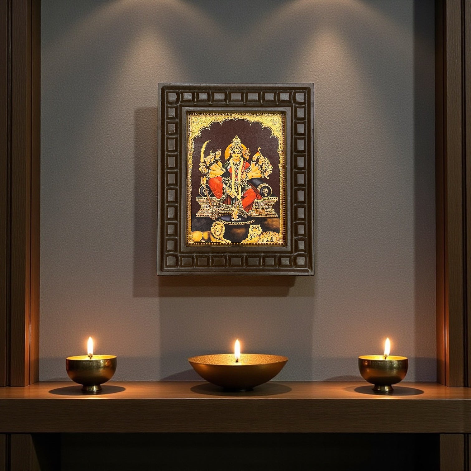 Durga Devi Gold Leafed Art With Wooden Frame 6