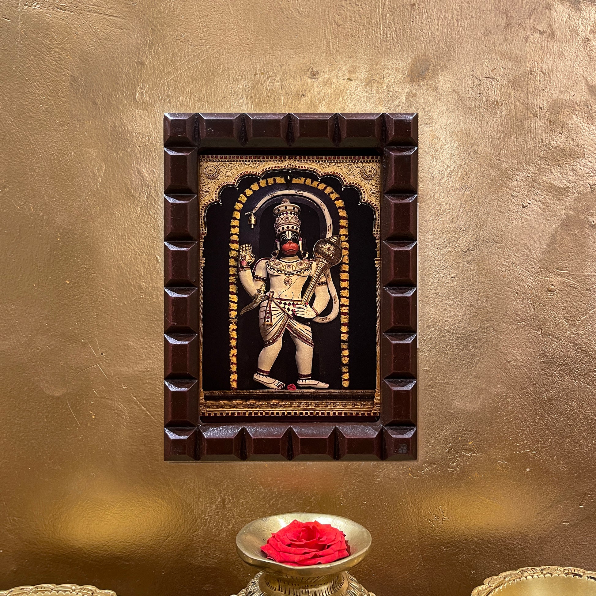 Gold Leafed Ashtamsa Hanuman in Wooden Frame