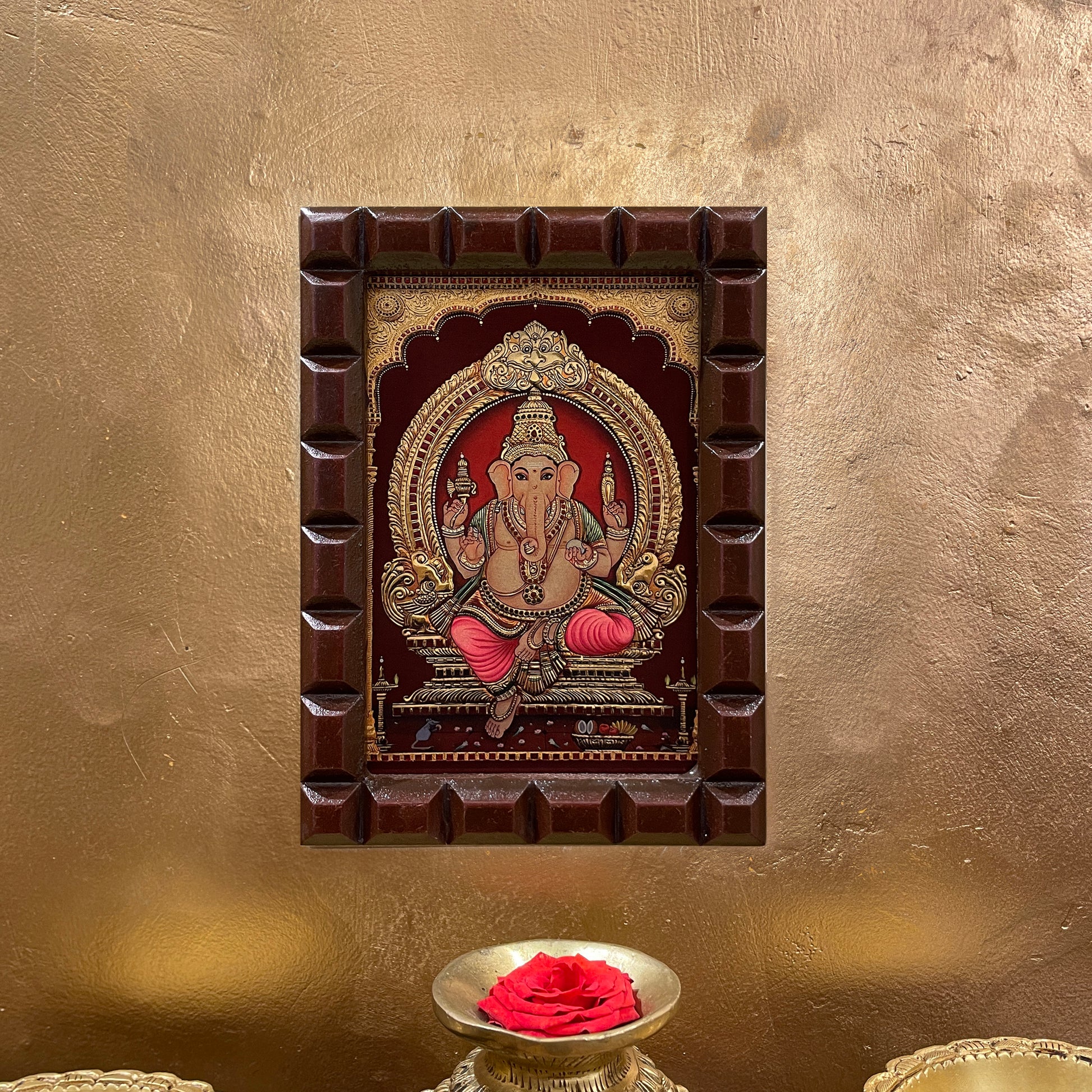 Gold Leafed Lord Ganesha in Wooden Frame