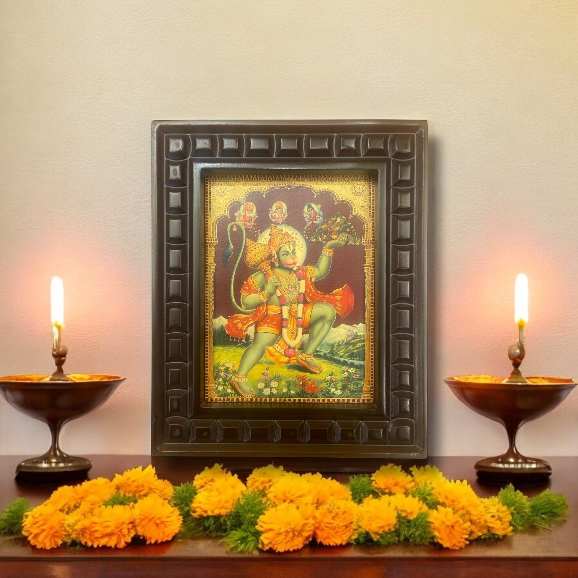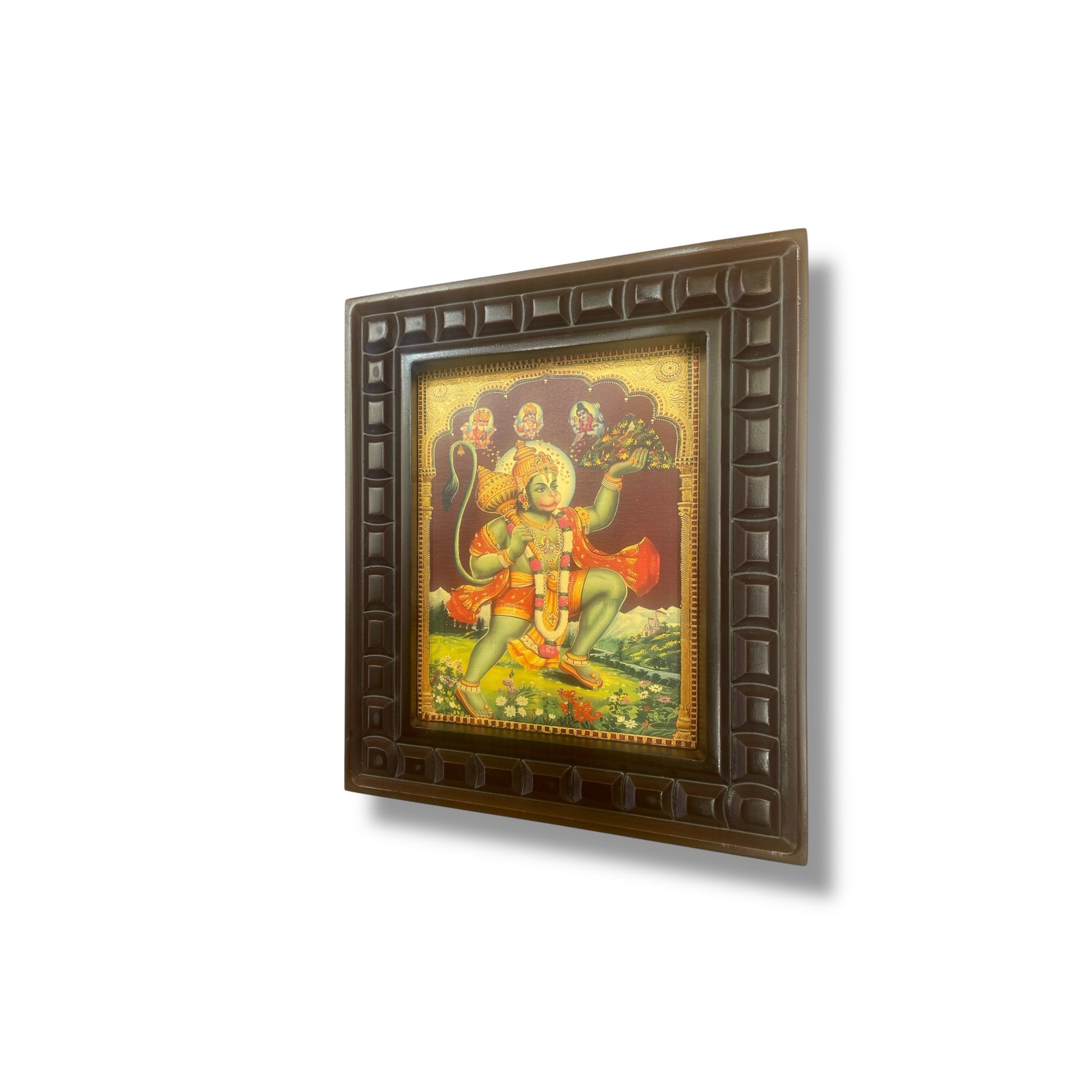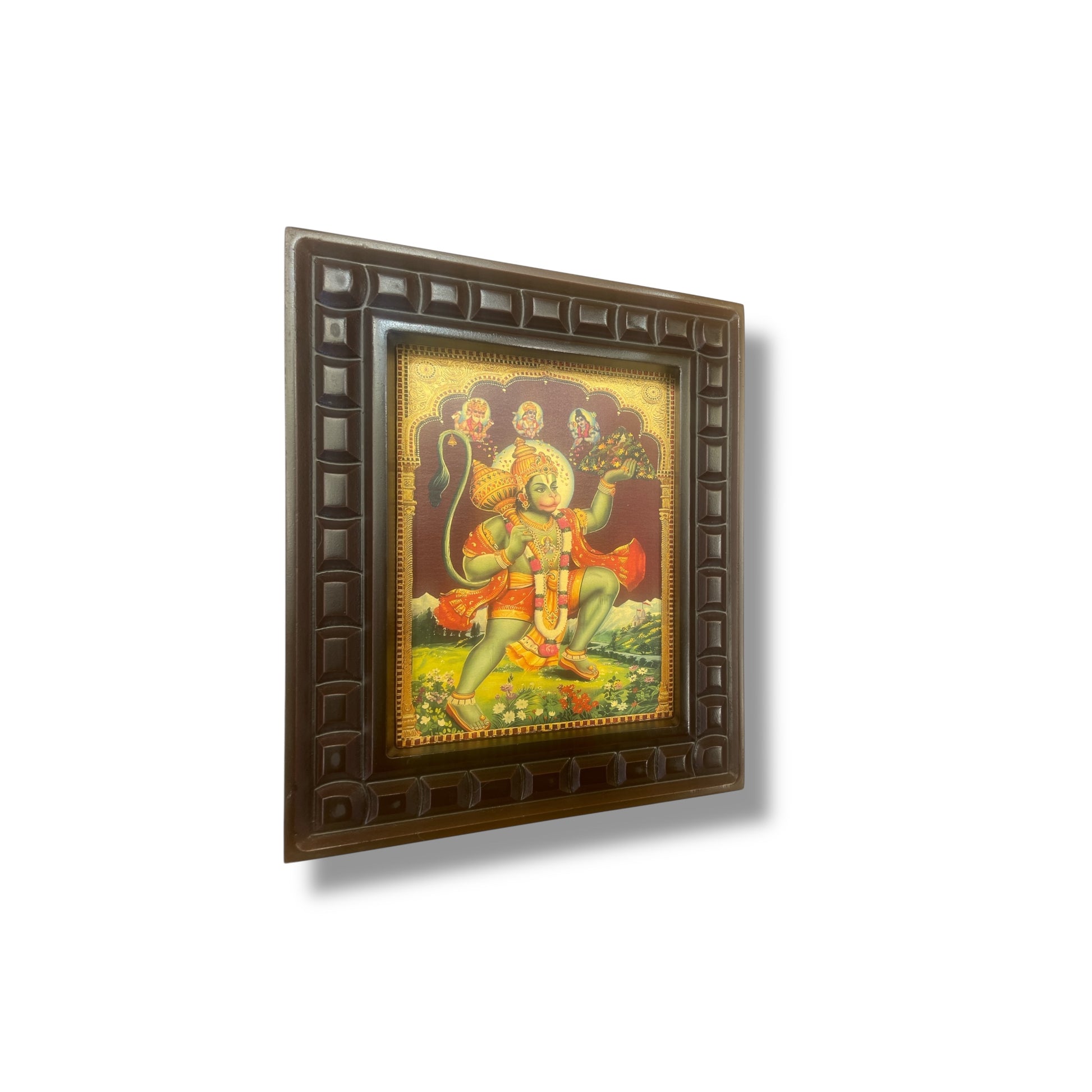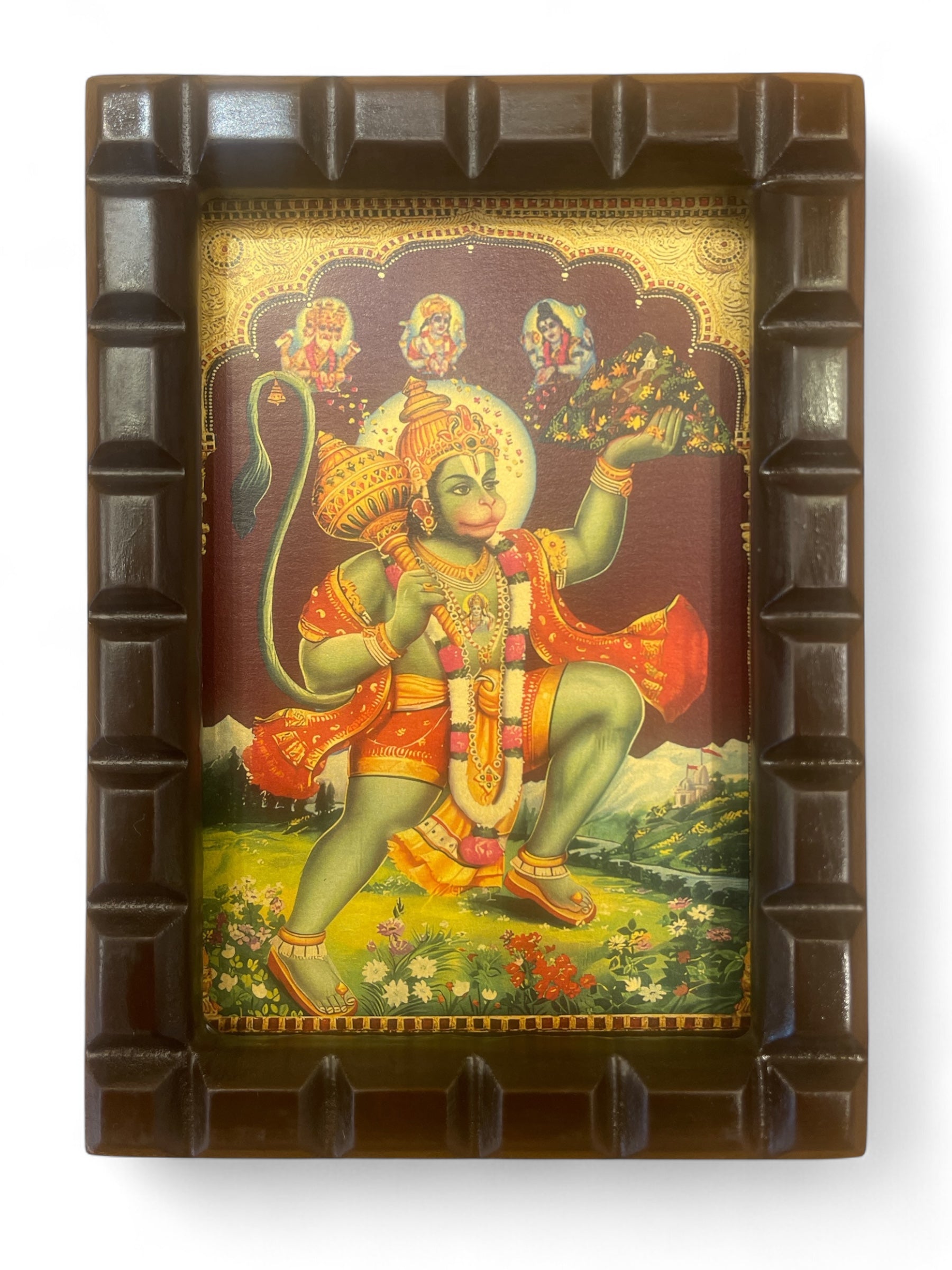 Hanuman - 3 Gold Foiled Art within Wooden Frame