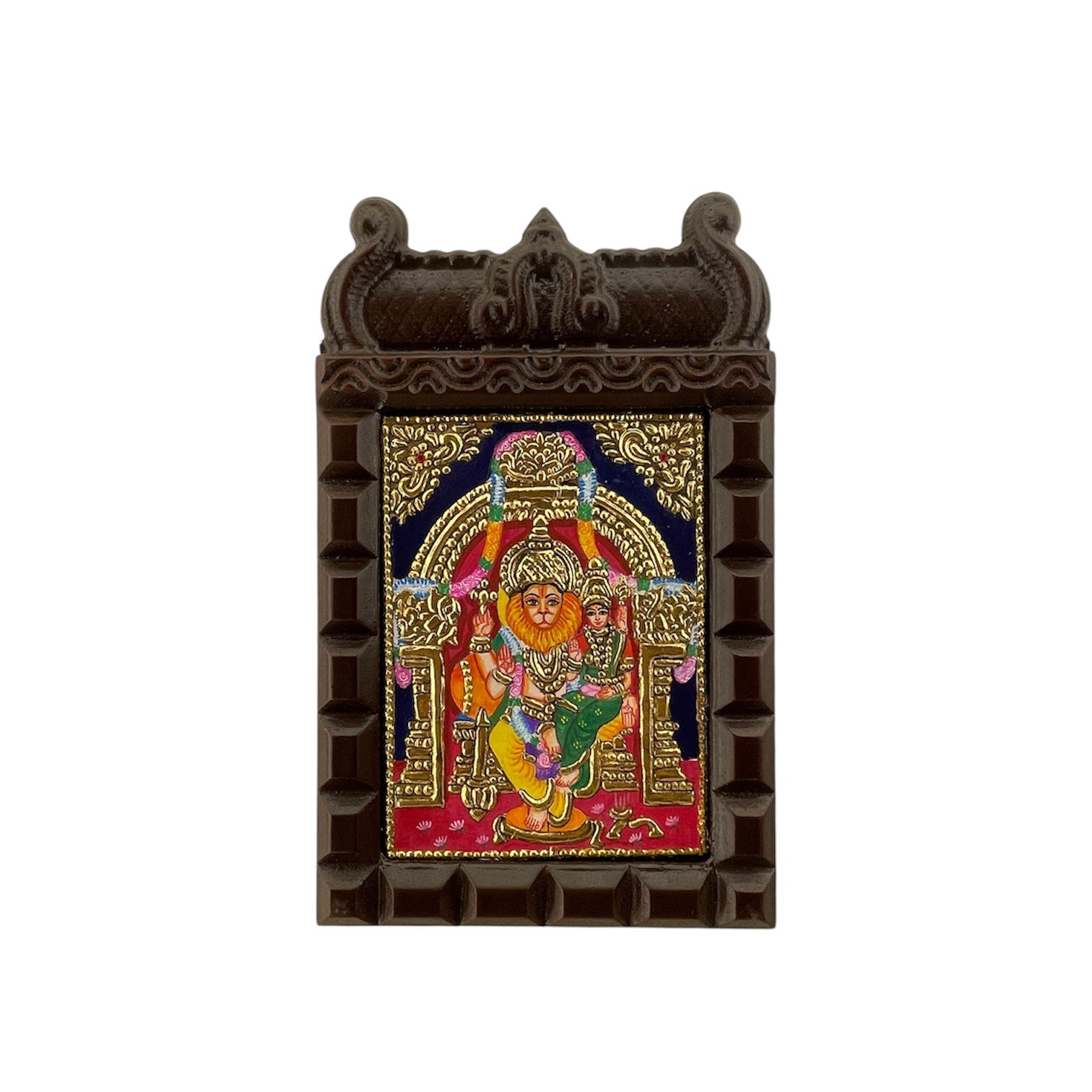 Lakshmi Narasimha Tanjore Painting in Wooden Temple Frame
