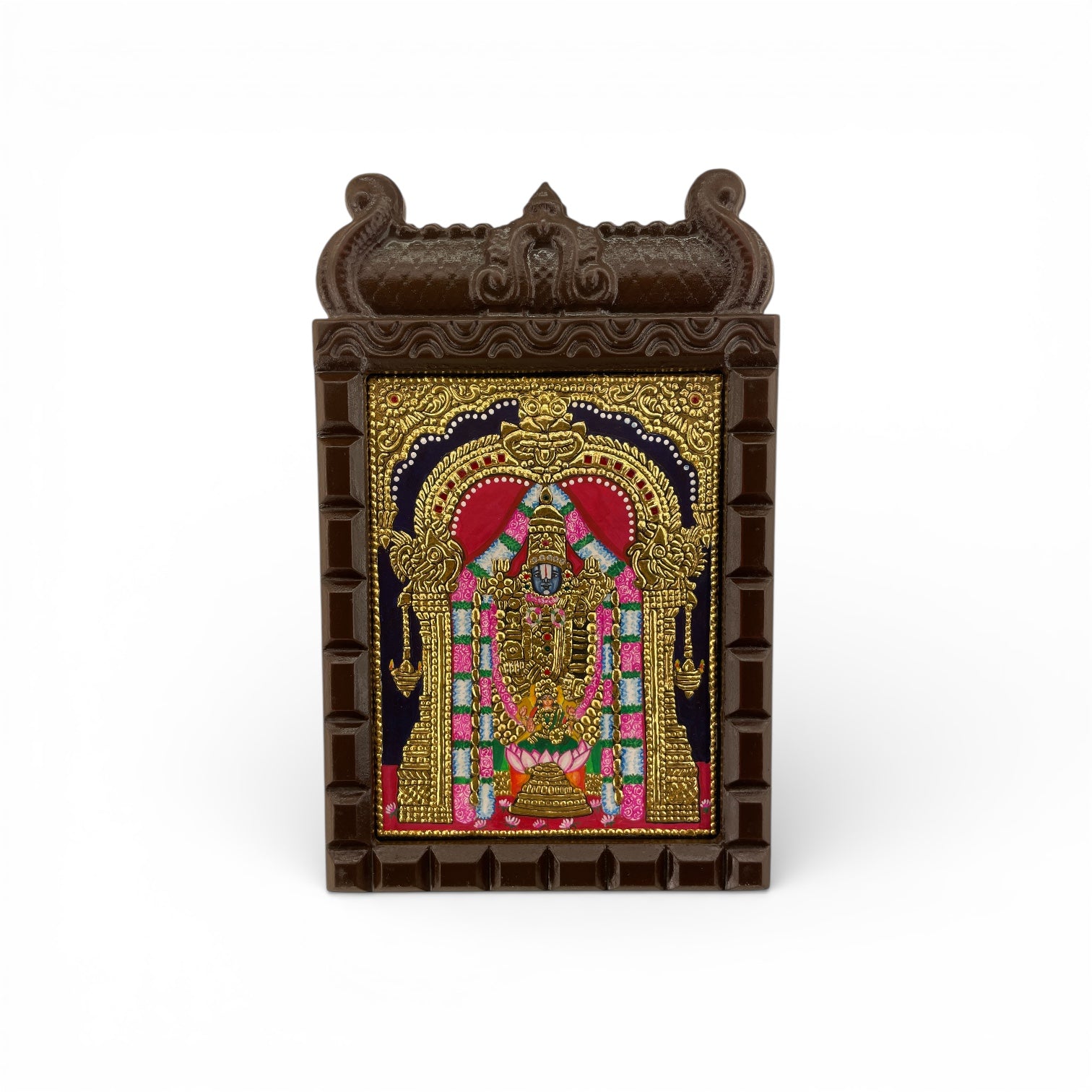 Lord Tirupati Tanjore Painting in Wooden Temple Frame