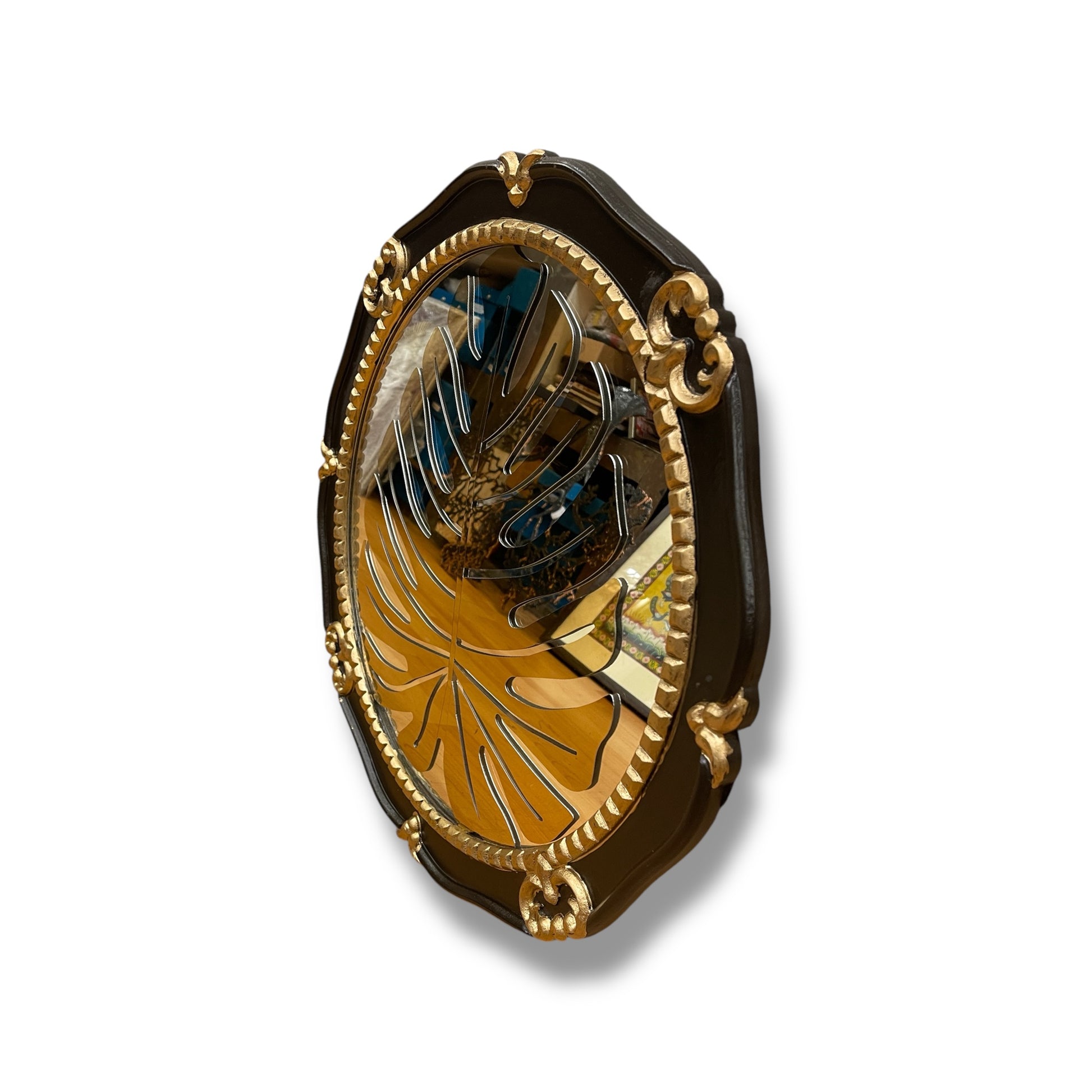 Elevate your space with this elegant Monstera Leaf Wall Mirror, featuring a sleek botanical design etched in gold. Framed in a luxurious black and gold ornamental border, this mirror brings a touch of sophistication and nature-inspired charm to any room. Ideal for living rooms, hallways, entryways, or bedrooms, it serves as both a functional mirror and a statement wall art piece.