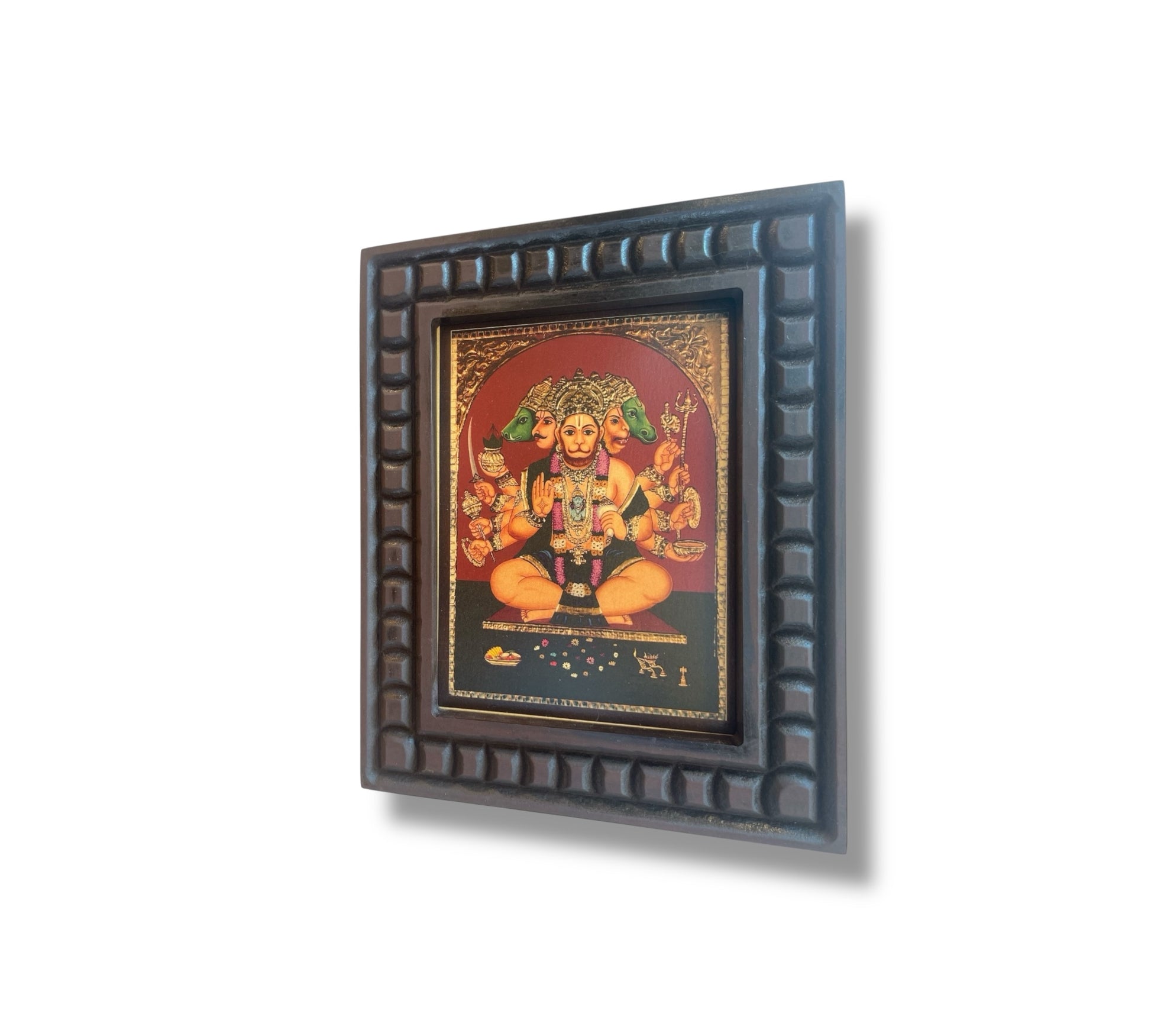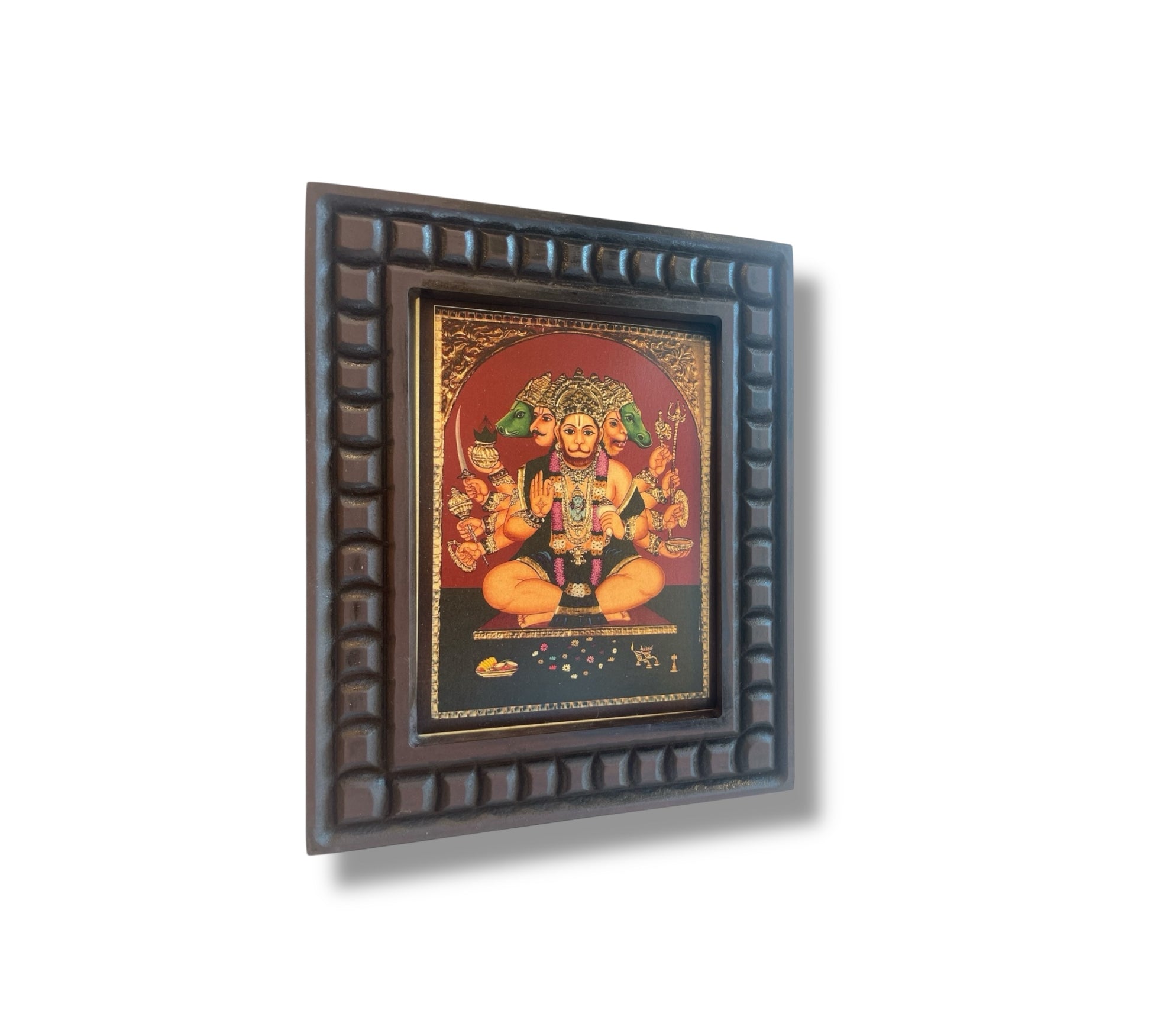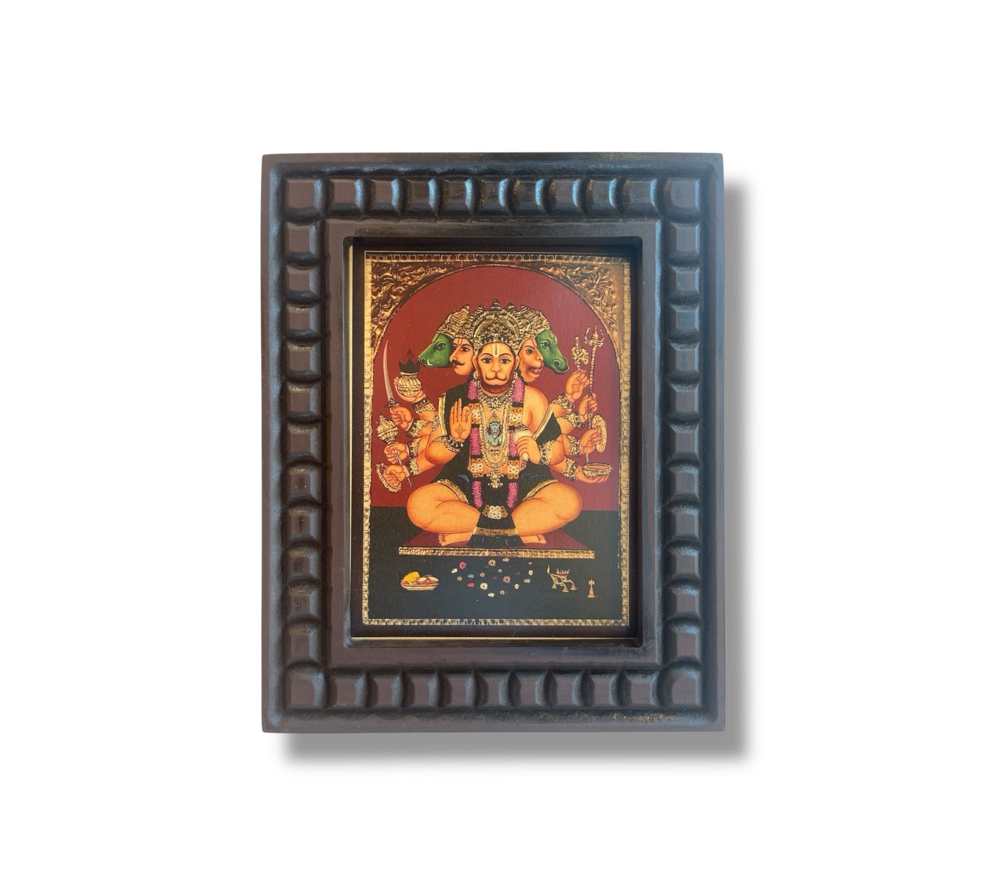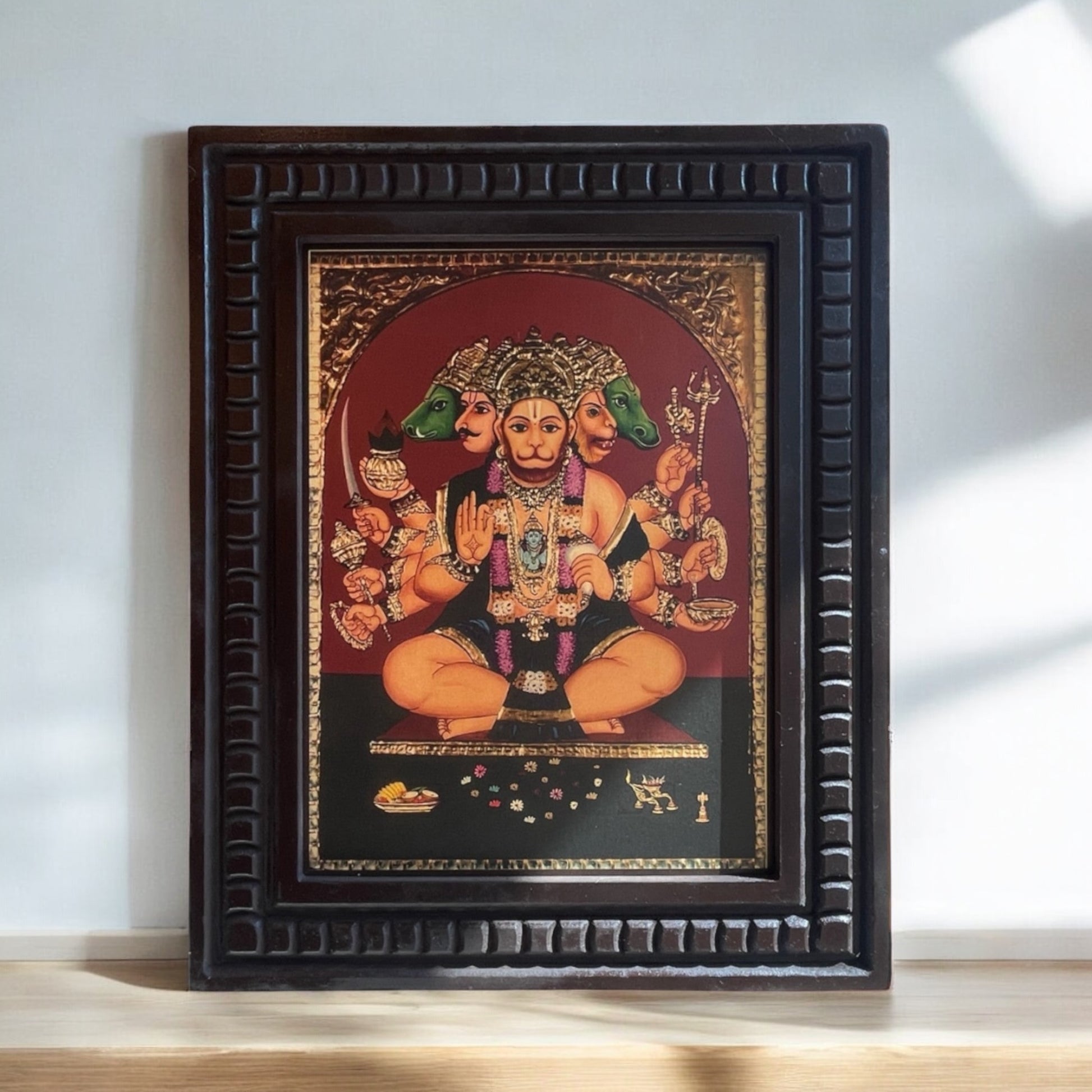 Gold Leafed Art Panchmukhi Hanuman With Wooden Frame