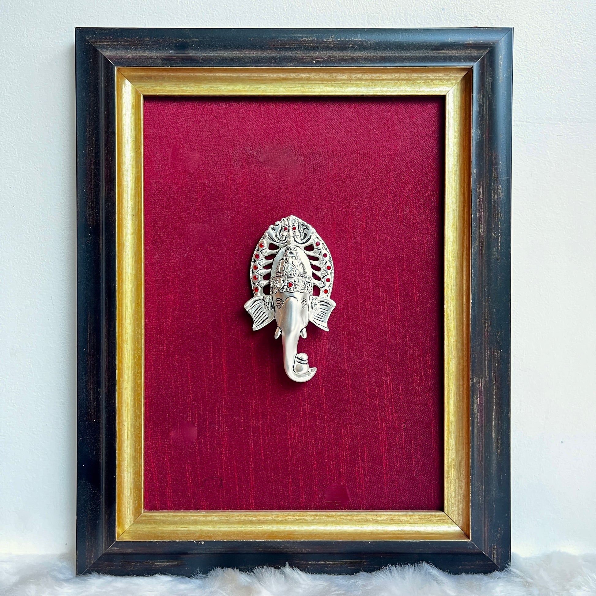 Introducing the "Sacred Ratna Kalash Ganesha on Red Wine Silk Elegance," a stunning amalgamation of tradition and luxury. This divine piece showcases Lord Ganesha against a rich red wine silk backdrop, exuding warmth and sophistication. Meticulously crafted, it embodies blessings and positive energy, elevating any space with its regal presence. A testament to artistry and spiritual reverence, it is a must-have for those seeking refined elegance in their sacred decor collection.