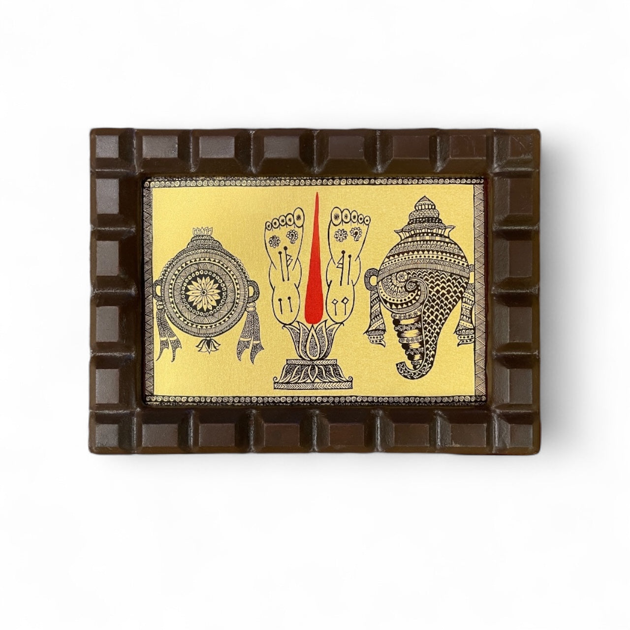 Bring divine protection and positive energy into your home with this sacred Shanku Chakra Namam Wall Art. Representing the powerful symbols of Lord Vishnu, the Shanku (Conch) signifies purity, the Chakra (Disc) symbolizes protection, and the Namam embodies divine presence. Beautifully crafted and set in an elegant wooden frame, this artwork is perfect for adorning pooja rooms, entrances, or gifting during auspicious occasions.
