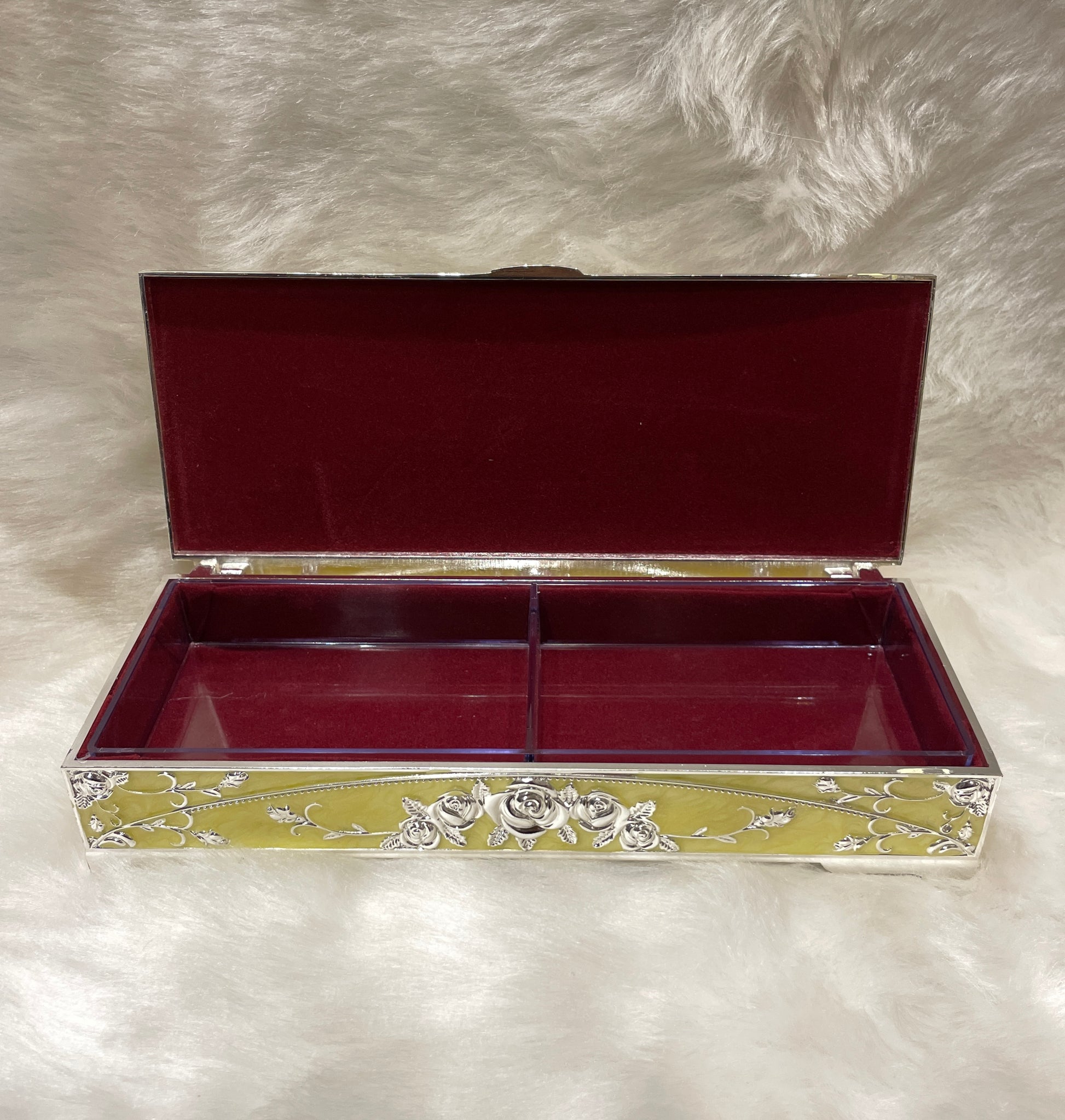 Material: Crafted with precision, the jewelry box is made from high-quality silver, ensuring durability and a lustrous finish. The yellow color is applied with meticulous attention, providing a vibrant and long-lasting charm.