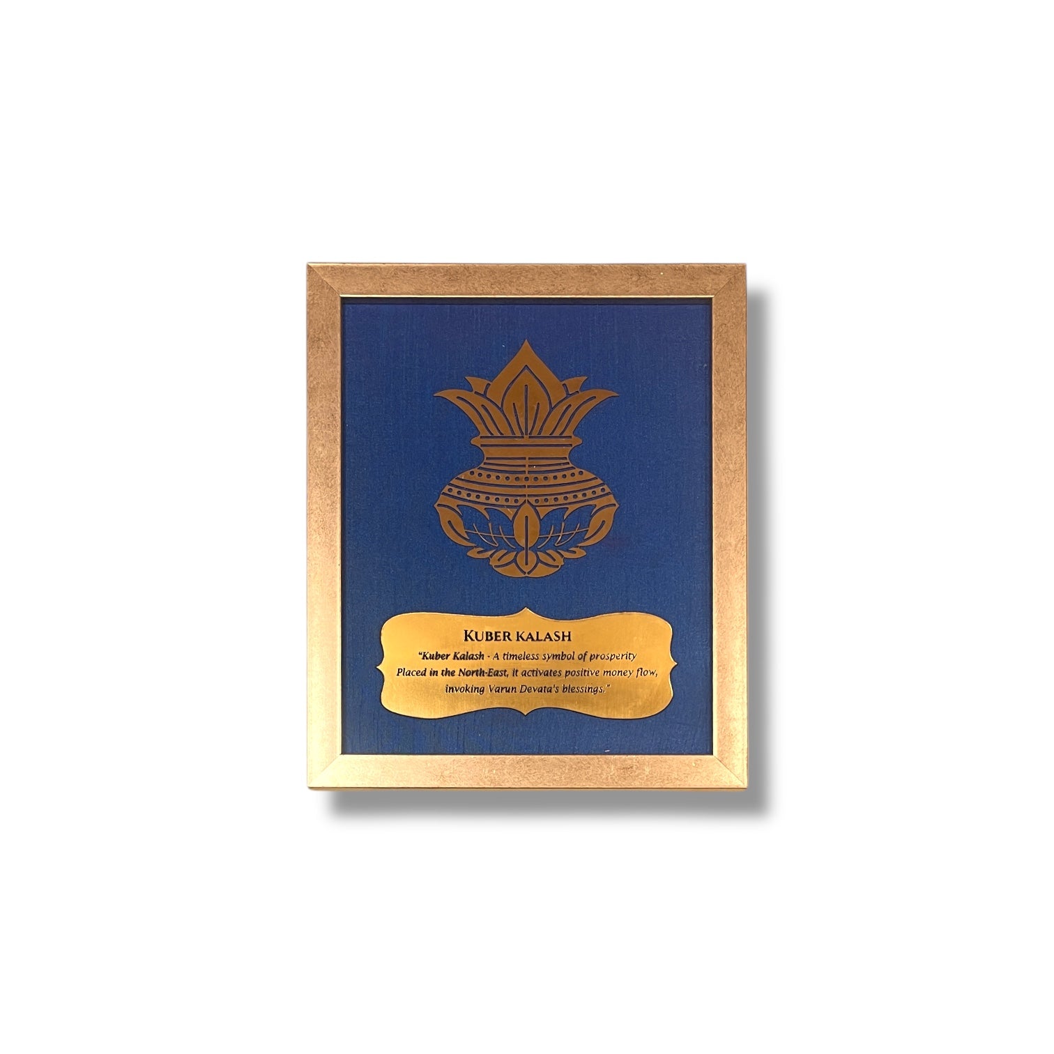 Enhance your home or office with this elegant Kuber Kalash wall frame in titanium metal, featuring a golden badge inscription on a rich blue backdrop. The Kuber Kalash is a timeless Vastu symbol of prosperity and positive energy. When placed in the North-East, it is believed to attract wealth, harmony, and abundance while invoking divine blessings. Perfect for pooja rooms, living spaces, offices, or as a thoughtful spiritual gift.