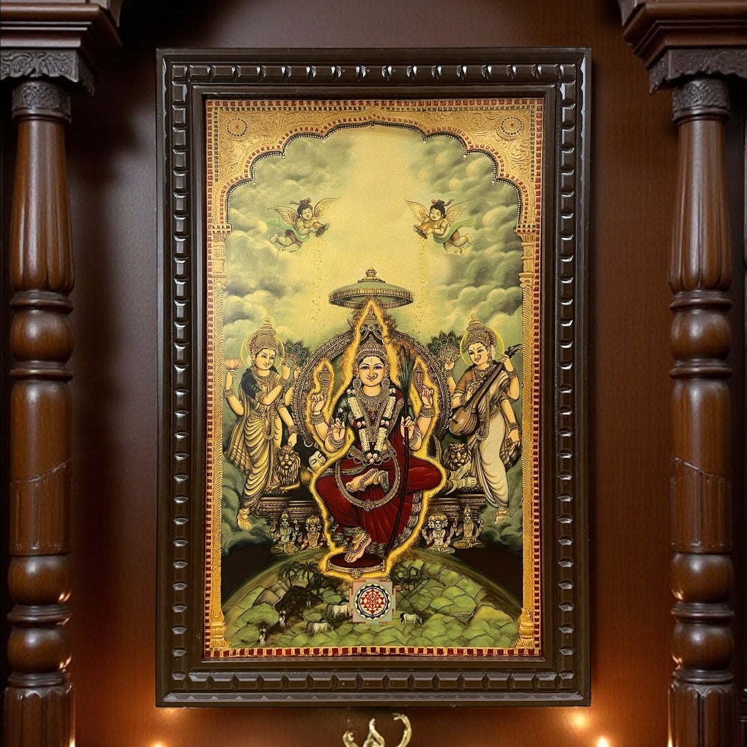 If you wish to experience this design in full 3D relief with authentic gold foil and layered depth, please visit our Tanjore Painting section, where we can recreate the same artwork using traditional techniques and materials.