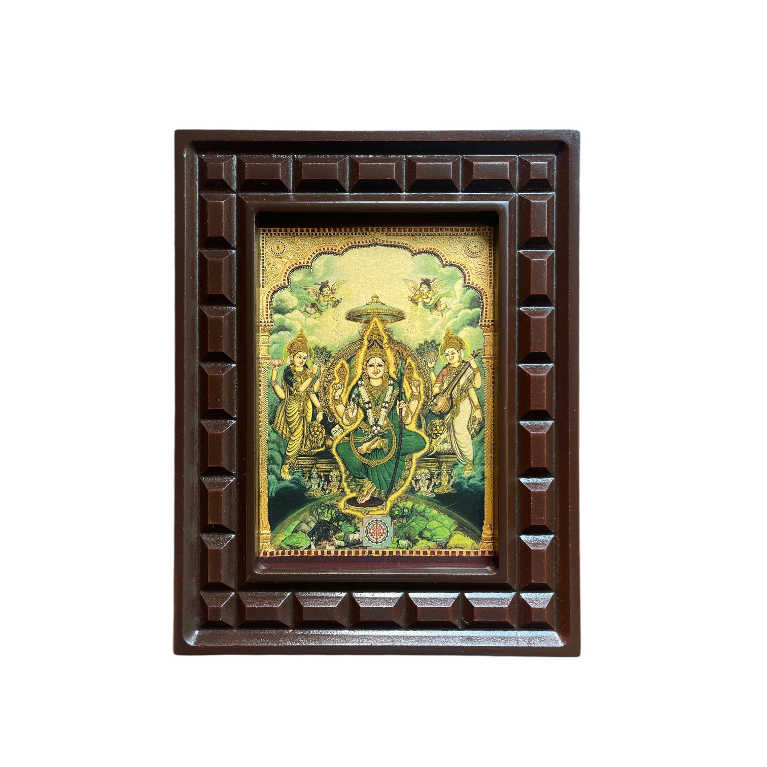 Tripura Sundari Green Saree Gold Foiled Art With Wooden Frame