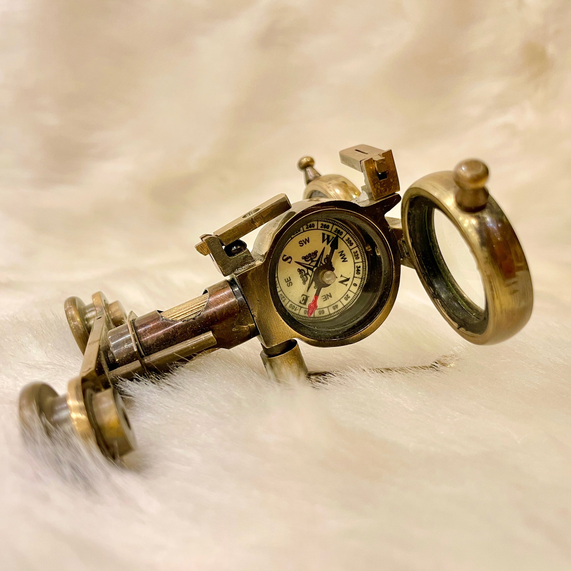 Embark on a journey through time with Estudio's Victorian Detective Spy Glasses, a masterpiece of bronze craftsmanship that pays homage to the iconic eyewear of Sherlock Holmes. Immerse yourself in the allure of a bygone era while enjoying modern functionality. The meticulously designed spy glasses boast a working compass for precise navigation, magnifying lenses for detailed observations, and a touch of versatility to enhance your entertainment, from classic plays to contemporary shows.