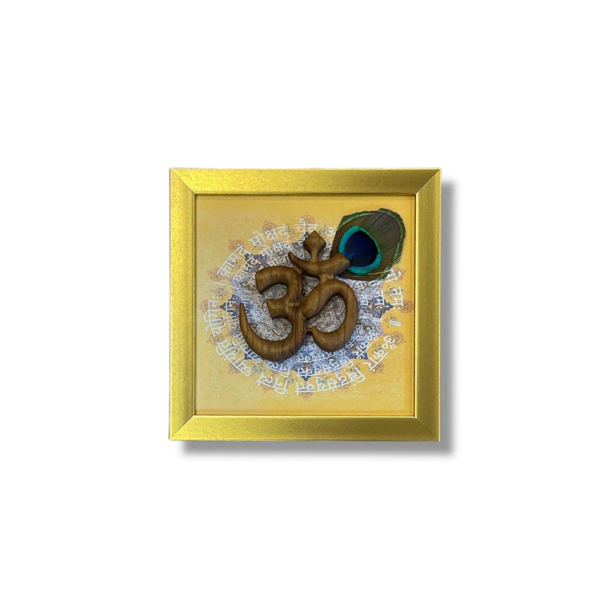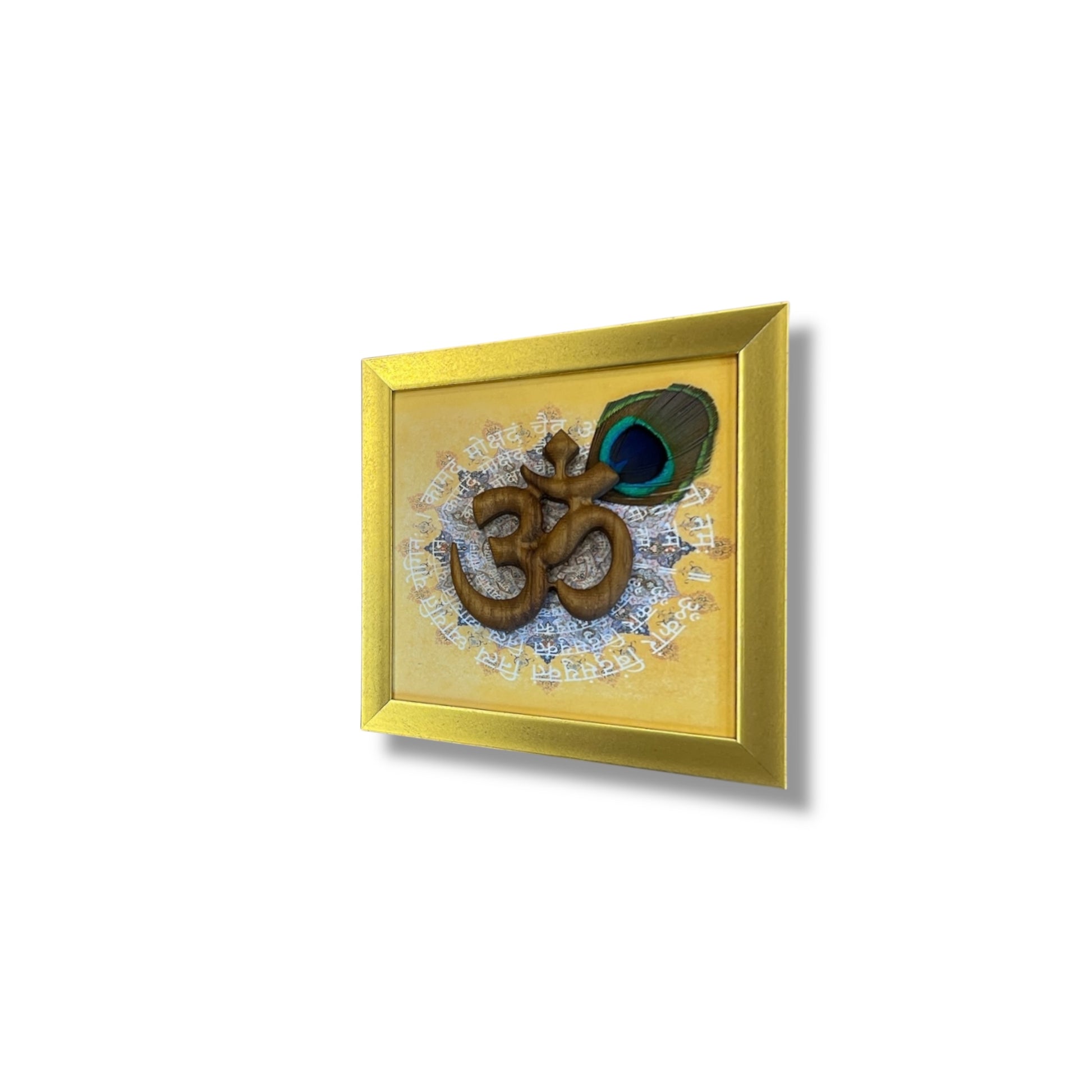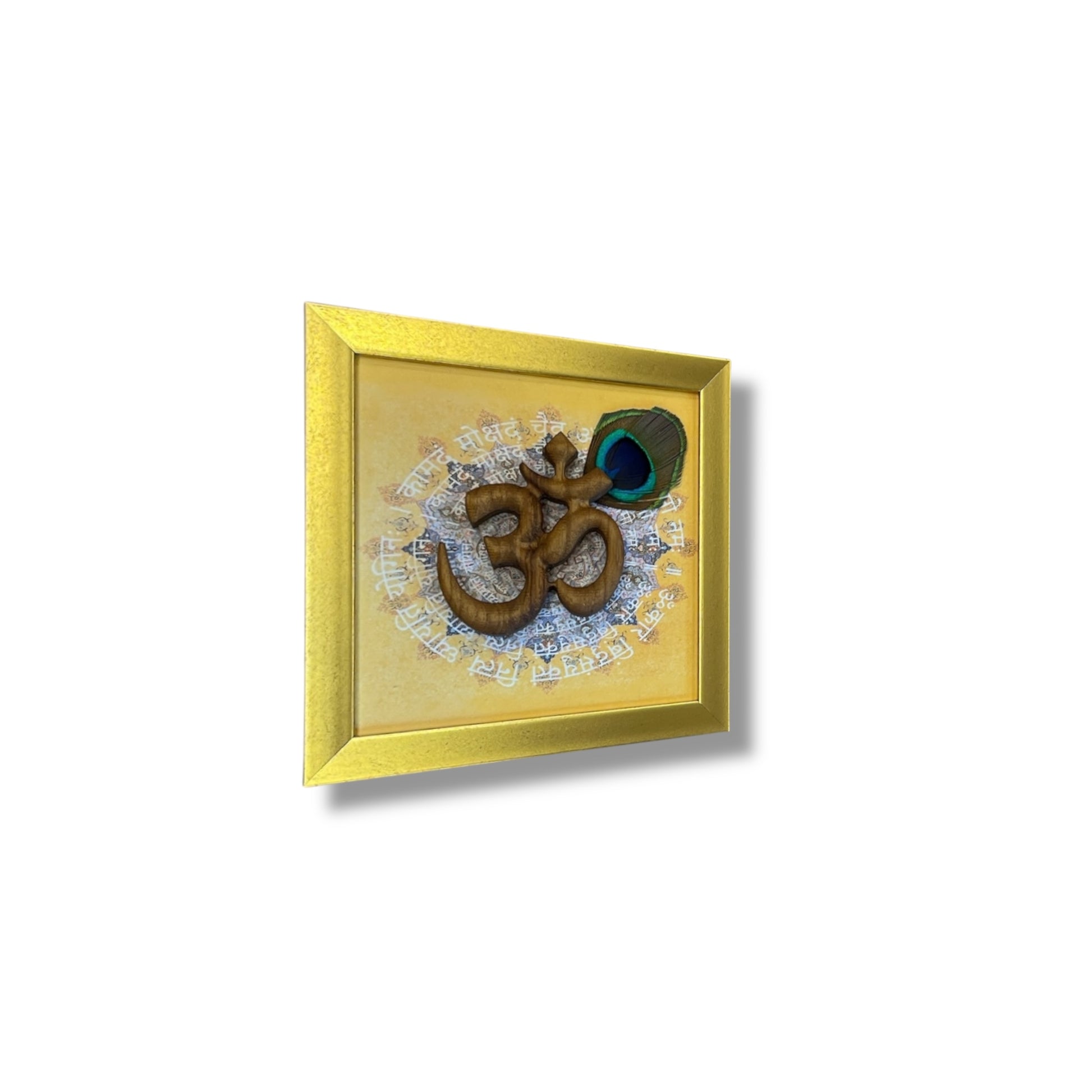 Teak Wood Om with Omkara Mantra | Cream Golden Resin Frame